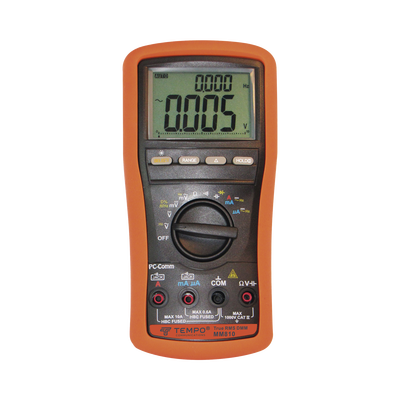 El MM810 de Tempo Communications es un multímetro avanzado dirigido a técnicos y electricistas profesionales. El MM810 es un multímetro de doble pantalla de alta precisión, alta precisión, True-RMS (TRMS) con todas las características de medición que probablemente necesite en el campo.