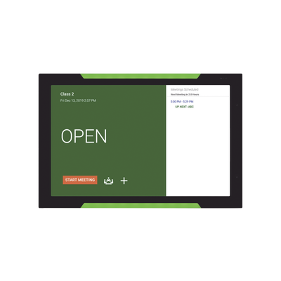 - Programación: ideal para vestíbulos, pasillos o fuera de cualquier espacio de reunión que requiera un medio visual rápido y fácil de mostrar la disponibilidad de la sala.