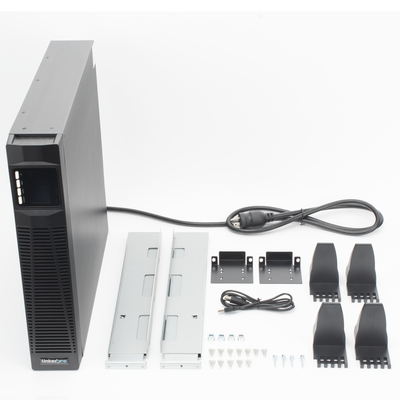 Está equipado con corrección de factor de potencia (PFC) en la entrada, factor de potencia de 0.9 en la salida, ofreciendo altos niveles de confiabilidad y protección para sistemas IT, equipo de telecomunicaciones, equipo médico y sistemas de misión crítica. Es convertible a Rack o Torre y solo toma 2U unidades de Rack.