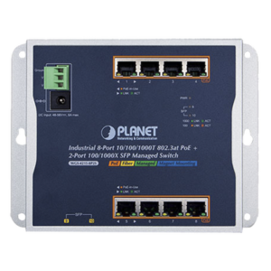 Switch Industrial PoE no administrable de 8 Puertos 10/100TX 802.3at,  Hasta 240 W, Combo TP / SFP Gigabit TP / SFP  (-40 ~ 75 grados C)