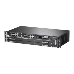 - Tarjeta de servicio con 16 Puertos GPON, 2 Puertos Gigabit Uplink SFP, 2 puertos 10GE Uplink (SFP+) y 2 Puertos Gigabit Uplink RJ45