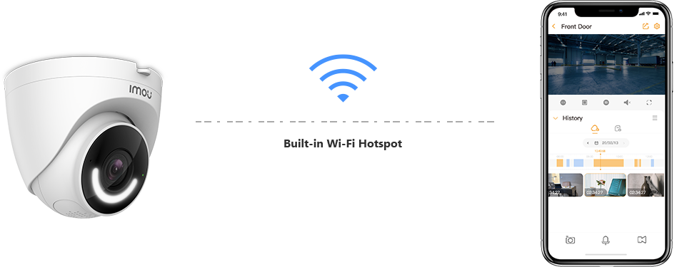 La cámara Turrent admite el Hotspot, por lo que puede transmitir el video y reproducir grabaciones incluso cuando no hay conexión a Internet gracias a la conexión directa a la red que la cámara genera.
