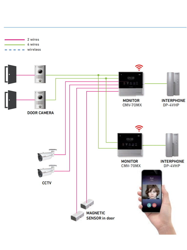 El monitor CMV70MX cuenta con la funcionalidad de poner integrarlo a la APP COMMAX HEY CALL disponible para Android&iOS, con la que podemos tener notificaciones al celular.